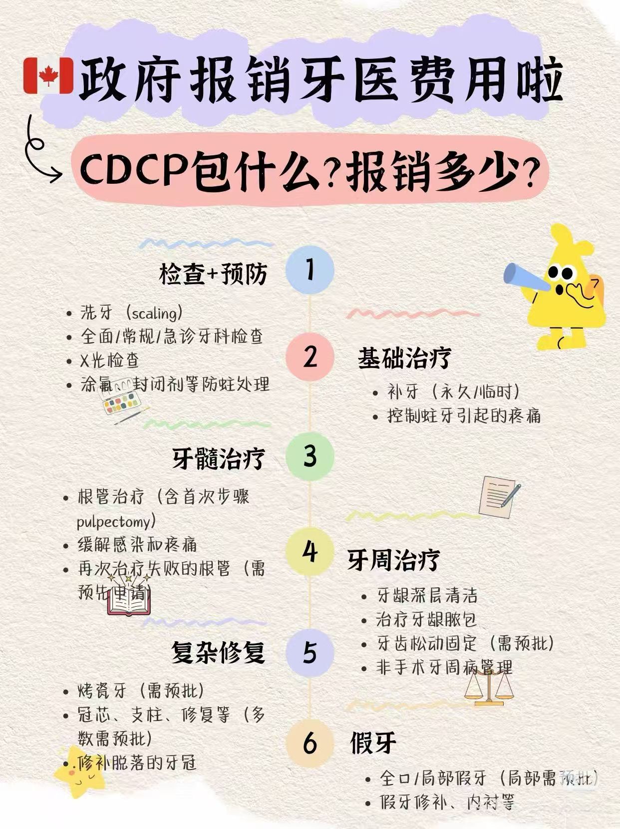 CDCP 不涵盖所有牙科治疗项目(如美容性牙齿美白或正畸等),具体细节请参阅官方服务清单。